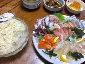 暑い日でしたので お刺身は食べやすく、そうめんも冷たく美味しかったです。