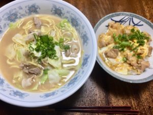 そんな晩ごはんは、 炭水化物& 炭水化物の 親子丼&麺類です(笑)